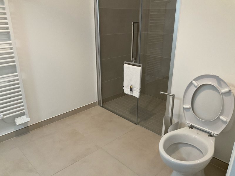 L’appartement dispose également d’une salle de bain moderne et fonctionnelle, avec une douche à l’italienne et des finitions de qualité. Chaque élément a été choisi pour allier esthétique et praticité, vous offrant un espace de vie où il fait bon se retrouver.